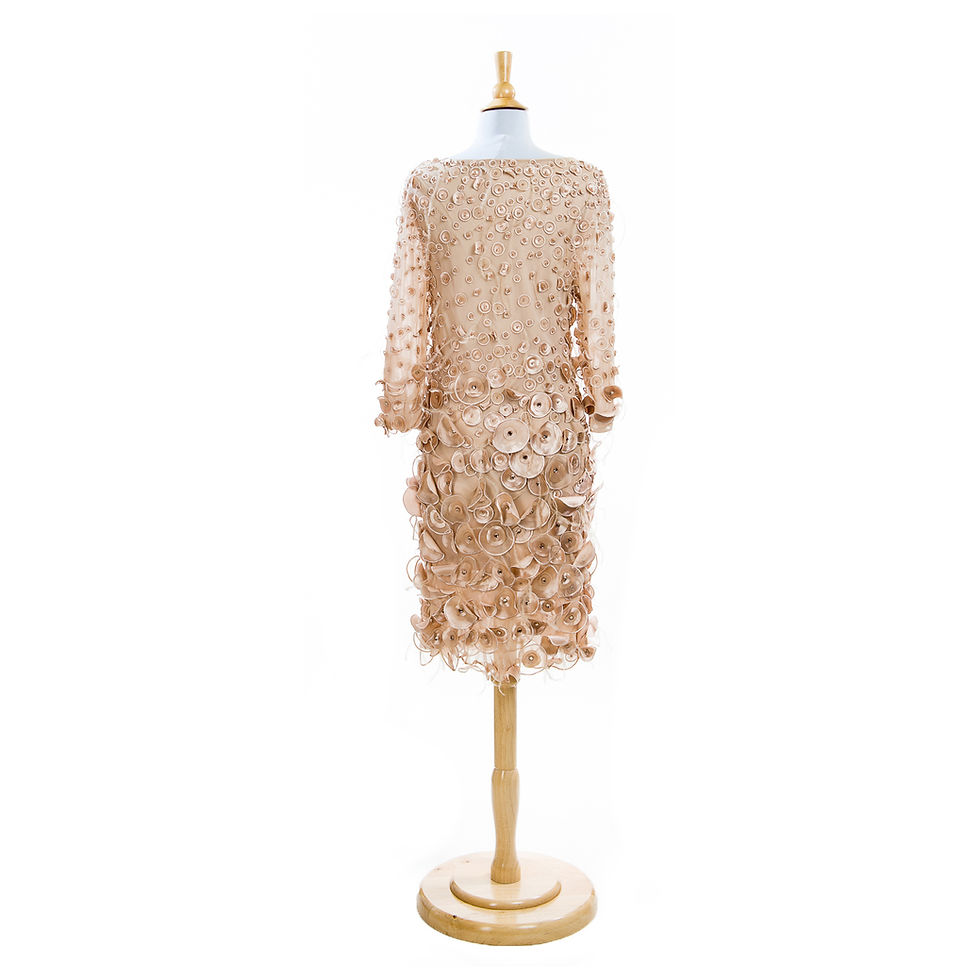 Dusty Rose Long Sleeve Cocktail Dress W Feathers