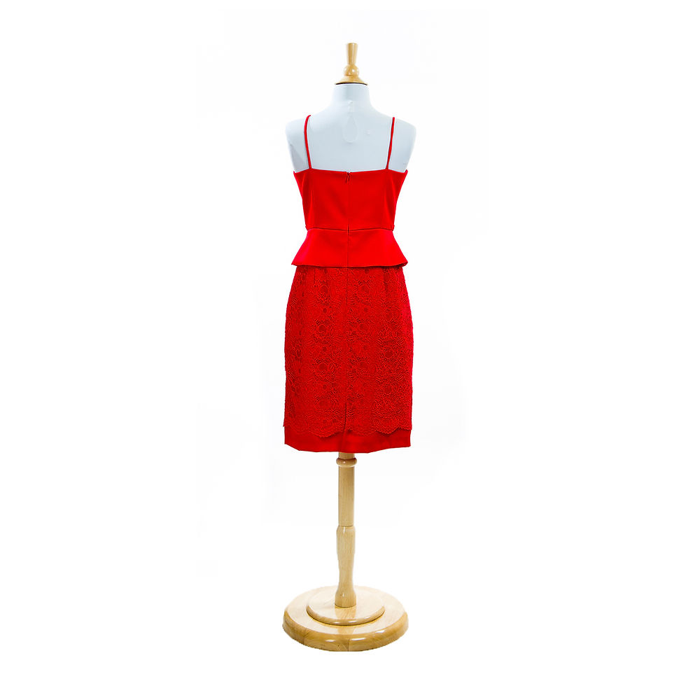 Red Lace Spaghetti Strap Peplum Belted Cocktail
